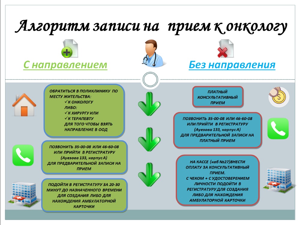 Позвонить 35-00-08 или 46-60-08 или прийти в регистратуру (Ауезова 133, корпус А)