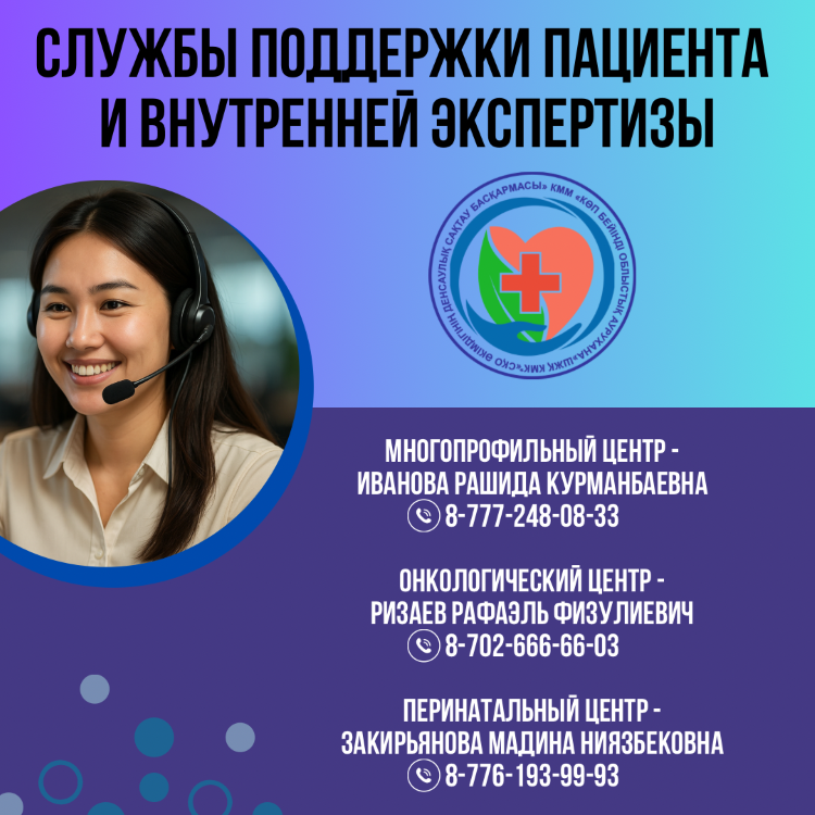 УВАЖАЕМЫЕ ПАЦИЕНТЫ! На основании Кодекса Республики Казахстан от 7 июля 2020 года № 360-VI «О здоровье народа и системе здравоохранения» в нашей больнице создана Служба поддержки пациента и внутренней экспертизы (далее Служба). Задачей этой Службы является обеспечение реализации прав граждан на получение качественной медицинской помощи в рамках ГОБМП и в системе ОСМС, а так же поддержка пациентов в вопросах медицинского обслуживания. В СЛУЖБУ ПОДДЕРЖКИ ПАЦИЕНТА ВЫ МОЖЕТЕ ОБРАТИТЬСЯ В СЛЕДУЮЩИХ СЛУЧАЯХ: если остались недовольны качеством оказания медицинской помощи; столкнулись с грубым отношением со стороны медицинского персонала; столкнулись с фактами вымогательства денежных средств медицинским персоналом за медицинские услуги, оказываемые в рамках ГОБМП и в рамках ОСМС; при нарушении стандартов государственных услуг в области здравоохранения; если столкнулись с другими проблемными вопросами, связанными с оказанием медицинской помощи